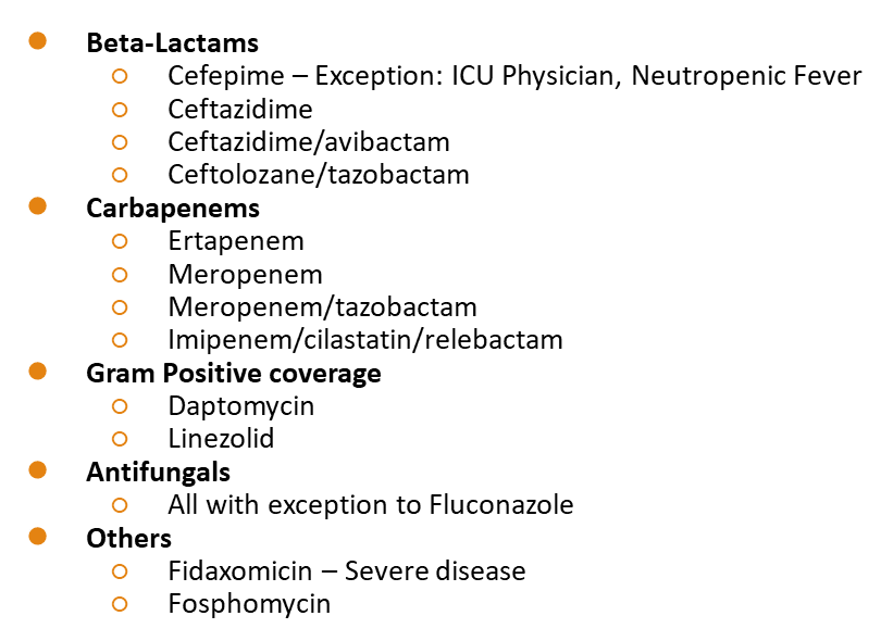 - If you suspect an ESBL organism, do NOT use Zosyn, any cephalosporin for empiric treatment. Your best choice is a carbapenem